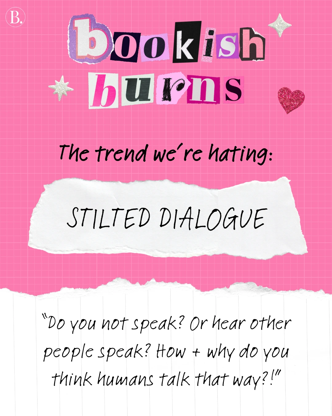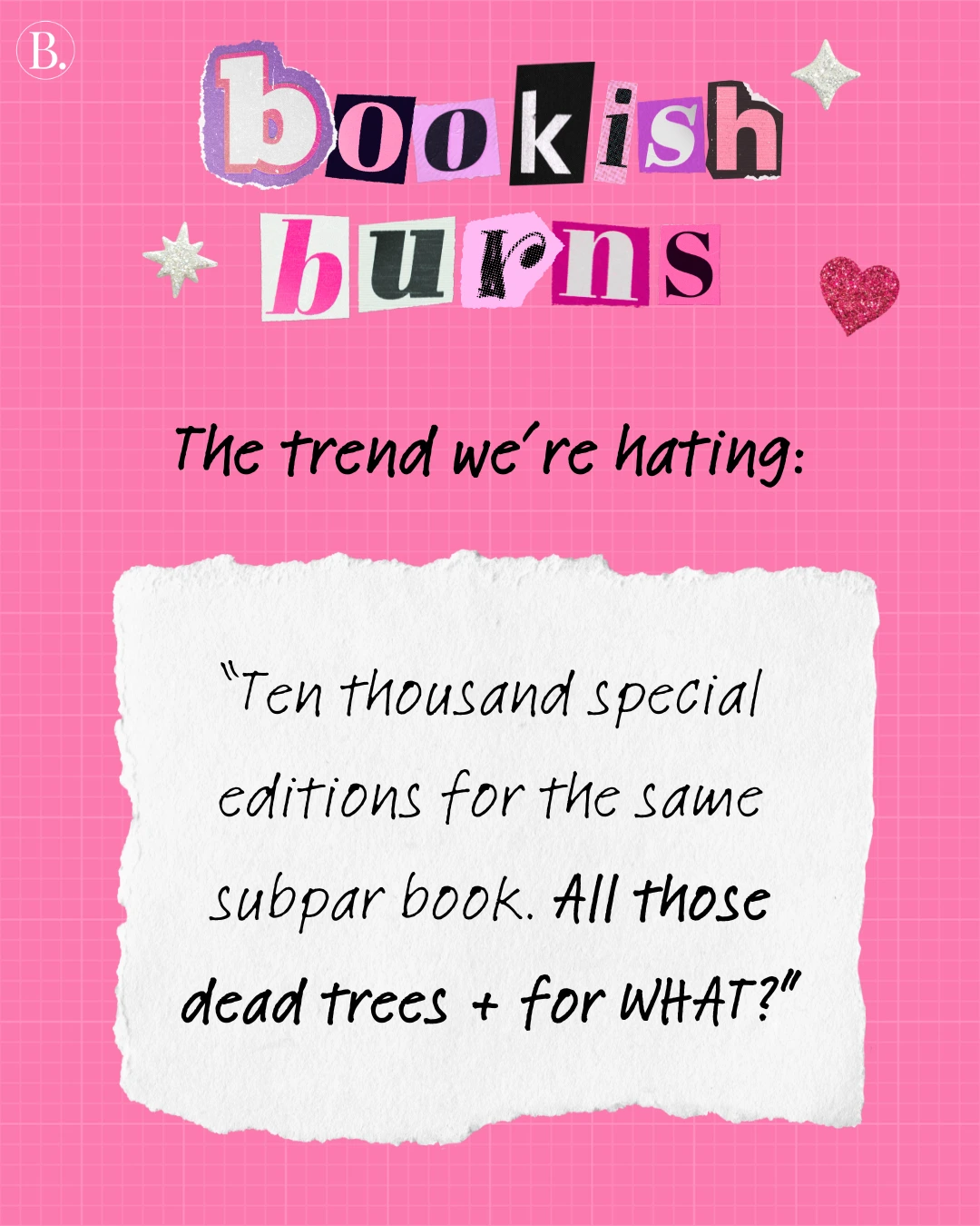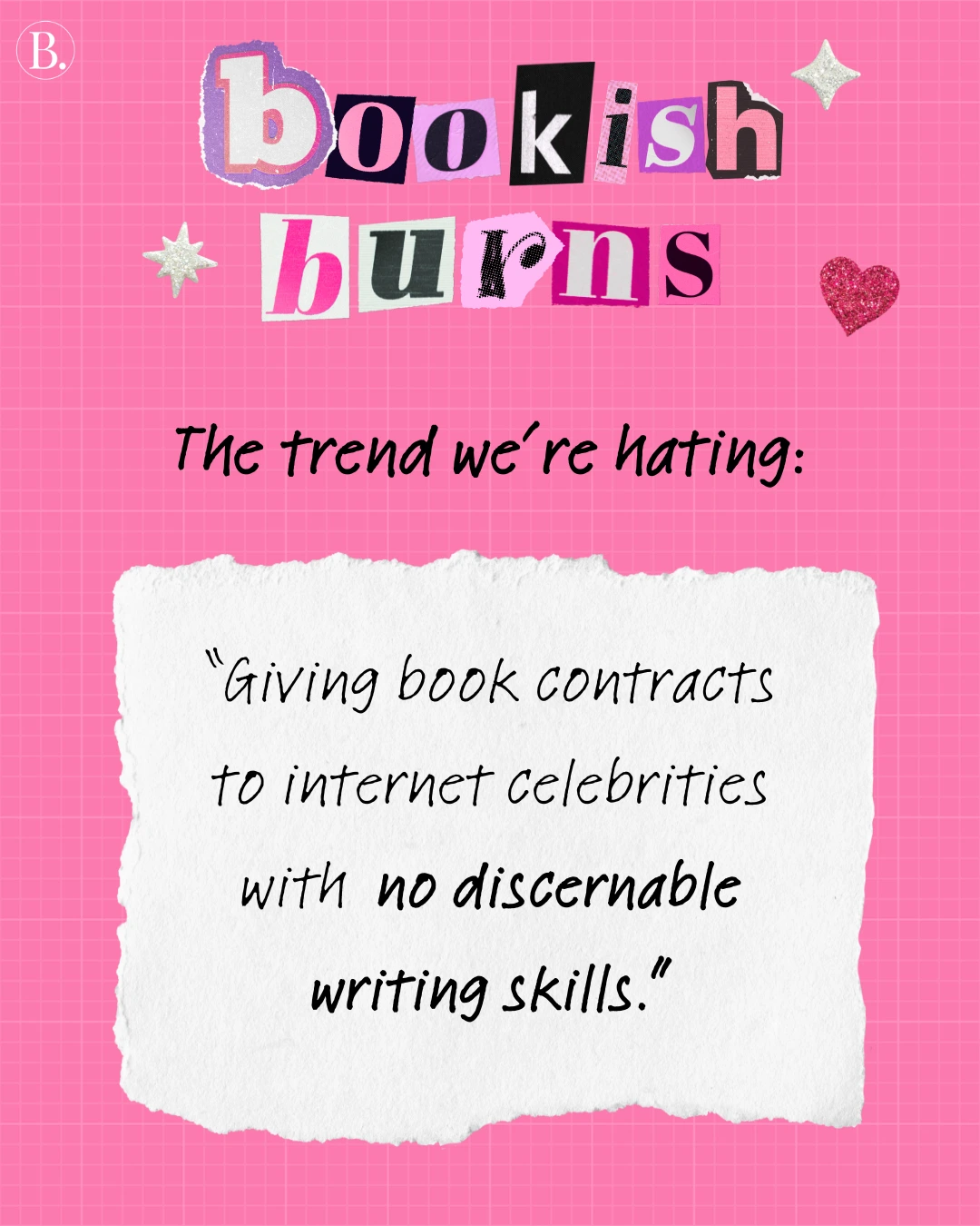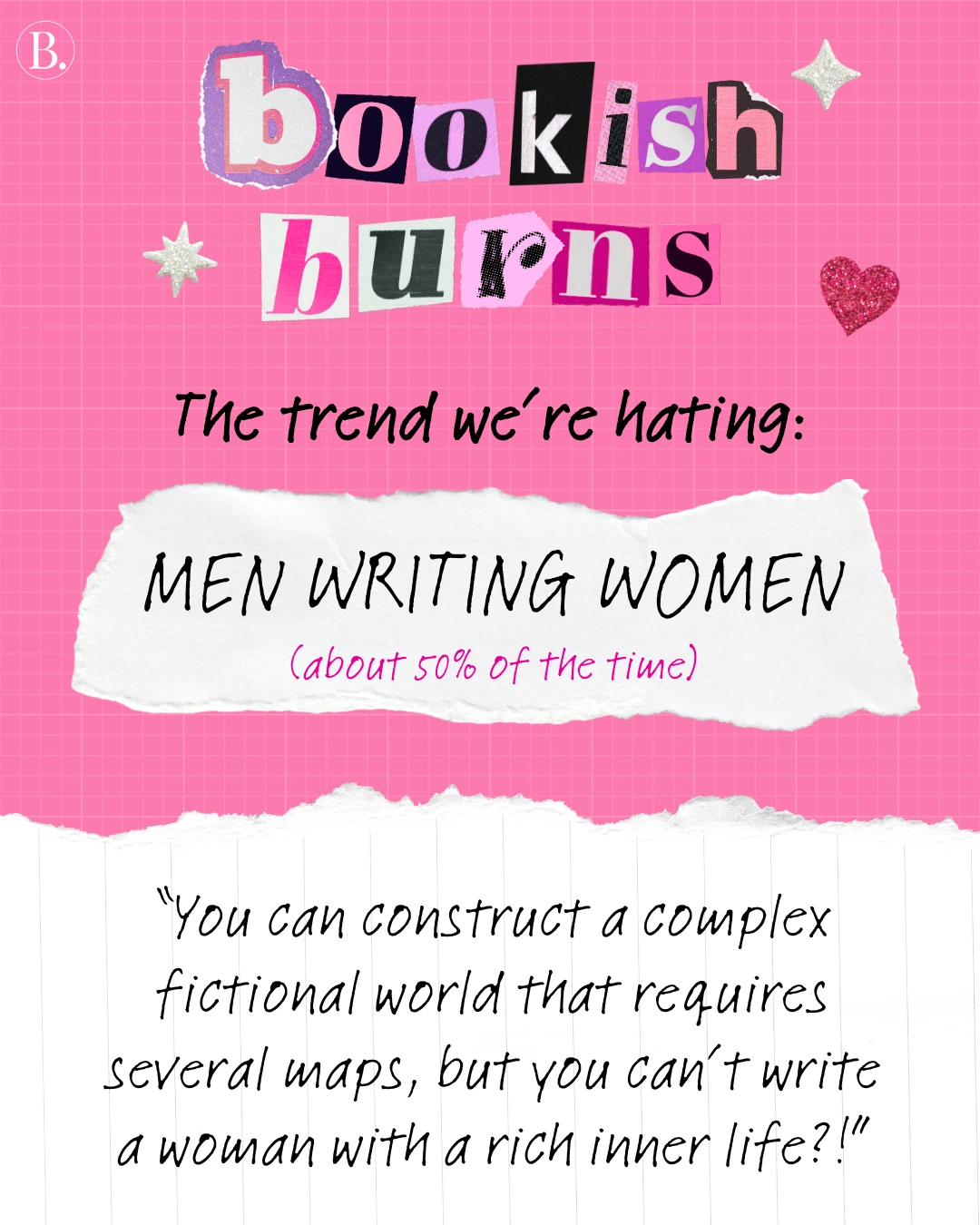 We asked the BookTrib team for their hottest book takes, from marketing moves to trope trickery. With the assurance of anonymity, everyone took a moment to vent. Scroll for some shocking bookish burns and find out if there are any that make you feel seen — or any that may ruffle some feathers.